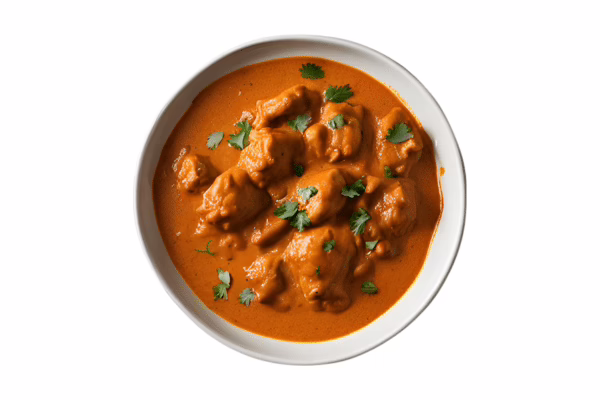 Tender chicken marinated in a creamy tomato-based sauce with a blend of Indian spices, offering a rich and flavorful culinary experience.