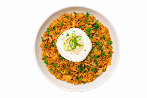 A classic Indonesian fried rice dish. Featuring tender chicken pieces stir-fried with aromatic spices, mixed with rice, and served with a side of fresh vegetables.