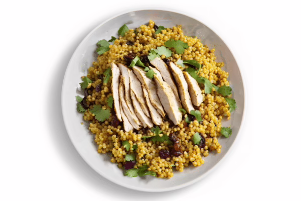 A refreshing blend of tender chicken, aromatic turmeric, and fluffy cous cous. Packed with goodness and zesty freshness .