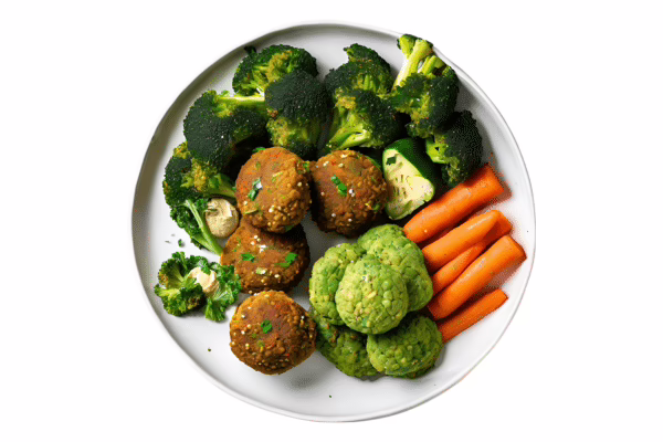 Crispy falafel served with creamy tahini sauce and fresh seasonal vegetables.