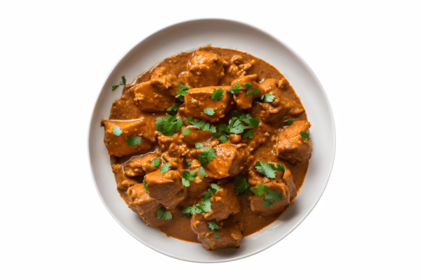Tender chicken cooked in a rich and creamy sauce with a blend of yogurt, nuts, and aromatic spices, offering a mild and flavorful taste experience.
