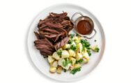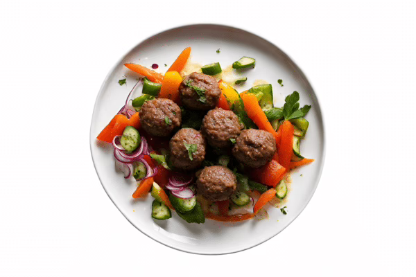 Savory and spiced Middle Eastern kofta balls served with a variety of fresh seasonal vegetables.