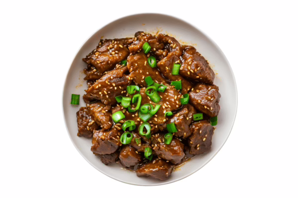 Tender slices of beef stir-fried with scallions and a savoury-sweet sauce, creating a deliciously bold and flavourful dish.