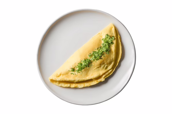 A savoury omelette filled with melted cheese and fresh chives, offering a delicious and aromatic meal.