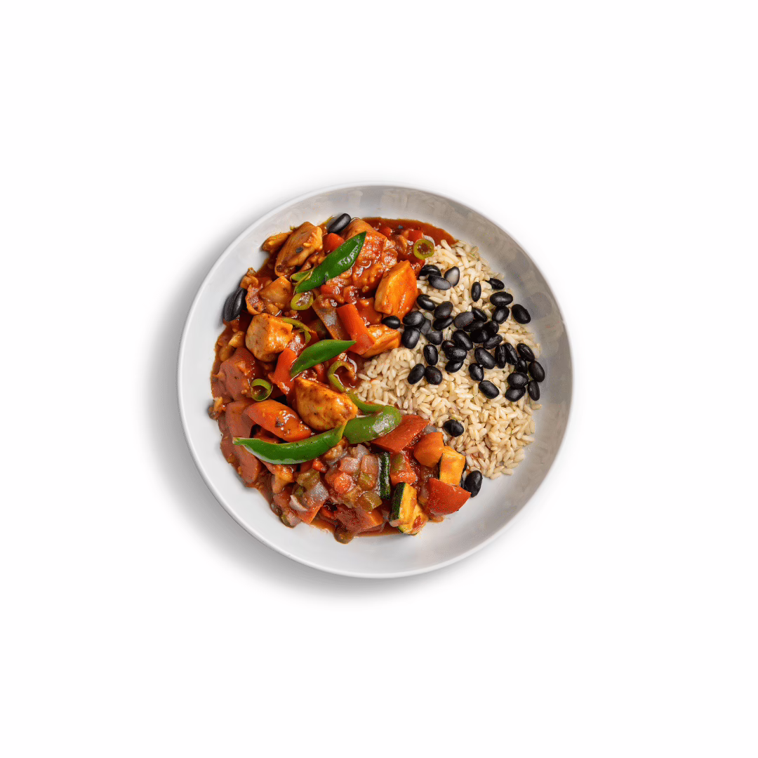 Chicken Breast (50%), Brown Rice, Beans, Corn Cob, Capsicum Red, Carrot, Mexican Sauce [Red Kiddney Beans, Capsicum Red, Onion, Water, Olive Oil, Salt, Spices, Sugar, Corn Starch, Vegetable Powders, Food Acid (330), Spice Extract (160c), Herbs, Sweet Chilli (Sugar, Garlic, Red Chilli, Acidity Regulator (260), Salt, Water, Thickener (1442, 415)), Paprika Sweet, Parsley, Coriander, Vegetable Stock Powder (Southern Ocean Sea Salt, Maize Maltodextrin, Cane Sugar, Yeast Extract, Dehydrated Vegetables (Onion, Spinach, Garlic and Celery), Natural Vegetable Flavours, Sunflower Oil, Extra Virgin Olive Oil), Modified Corn Starch, Pepper], Tasty Cheese (Milk)