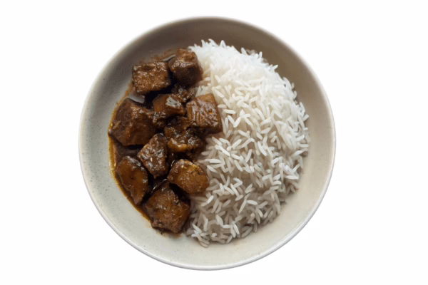 Beef Brisket (60%), Basmati Rice (20%), Organic Palm Sugar, Honey, Soy Sauce (Water, Soybeans, Salt, Wheat Flour, Preservative: Potassium Sorbate [E202]) Sweet Soy Sauce (Coconut Sugar, Sugar, Soy Extract [12%] [Water, Soybean, Wheat], Water, Salt, Colour [150a], Stabiliser [415], Preservatives [211, 223 (Sulphites)], Natural Flavouring, Acidity Regulator [330], Sweetener [Steviol Glycosides], Honey, Corn Flour, Fresh Ginger, Lemon Juice), Garlic, Tomato Paste (Tomato, Water, Salt), Chinese 5 Spice, Onions, Vegetable Oil