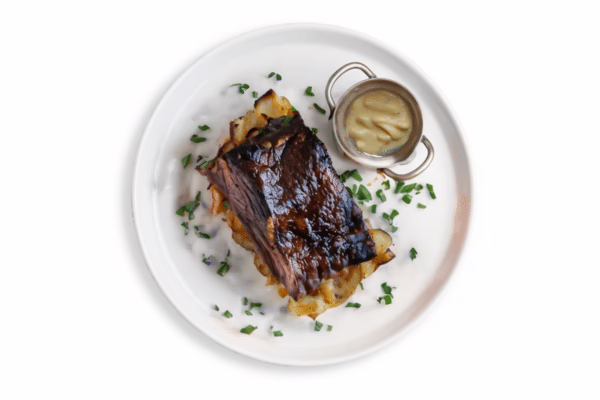 Smoked Beef Ribs paired with a Cheesy Potato Rosti Bake for a hearty and flavorful meal.