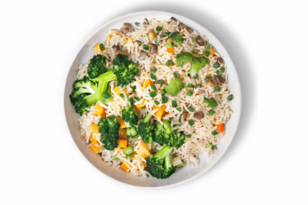 Stir-fried basmati rice with a medley of fresh vegetables.